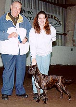 wins Best of Winners at the Cascade APBT Club show Feb. 17, 2002 under Judge: Debbie Curtis Rooter is a daughter of Rooster |