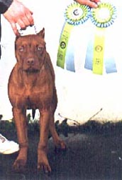 ![]() Ruckus at 1 1/2 years, what a stance! | ![]() At Mid-Valley Kennel Club of California Ruckus wins Jr. Male & Best Male under Judge Deborah Smith Also on 10/29/00 Ruckus took Reserve Champion, under Judge Jackie Lowe. |